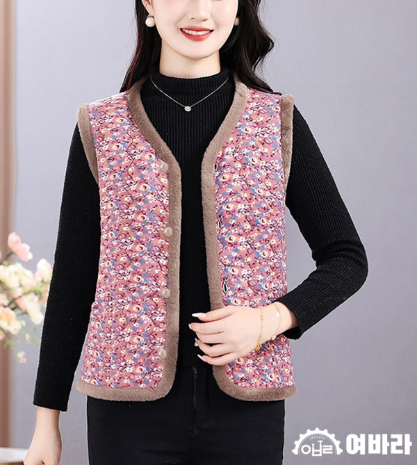 조끼 융털 레트로 여바라 중년 누빔조끼 꽃무늬 할머니 김장 깔깔이 엄마